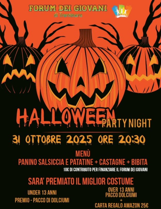 Per i più grandi, gli over 13, l’appuntamento è stato il Halloween Party Night, che si è svolto il 31 ottobre alle 20:30. I partecipanti hanno gustato un menù speciale composto da panino con salsiccia e patatine, castagne e bibita, contribuendo con 10€ a sostegno delle attività del Forum.